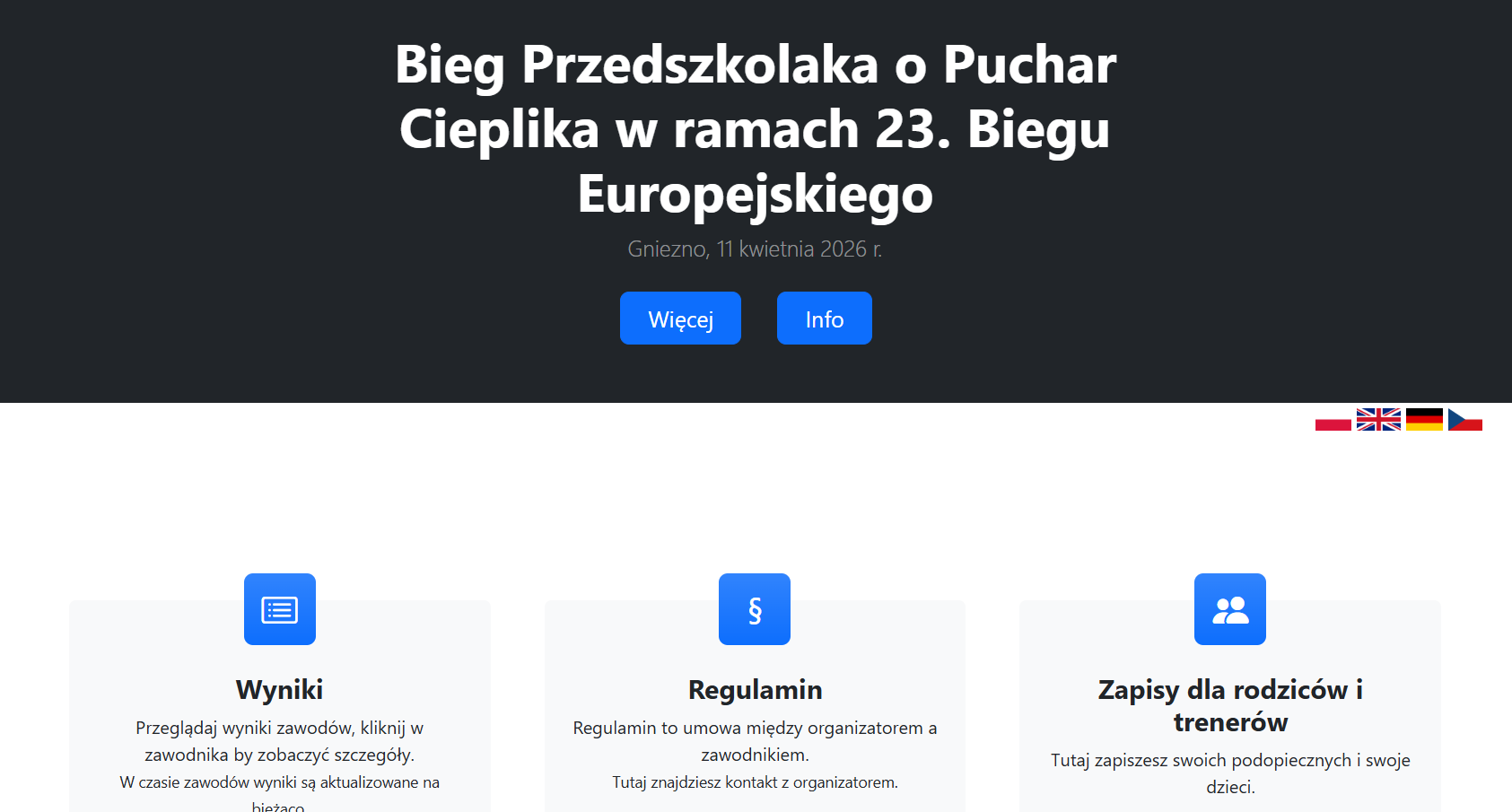 1. Wybierając opcję Zapisz się zostaniemy przekierowani do panelu zapisów Biegu Przedszkolaka.