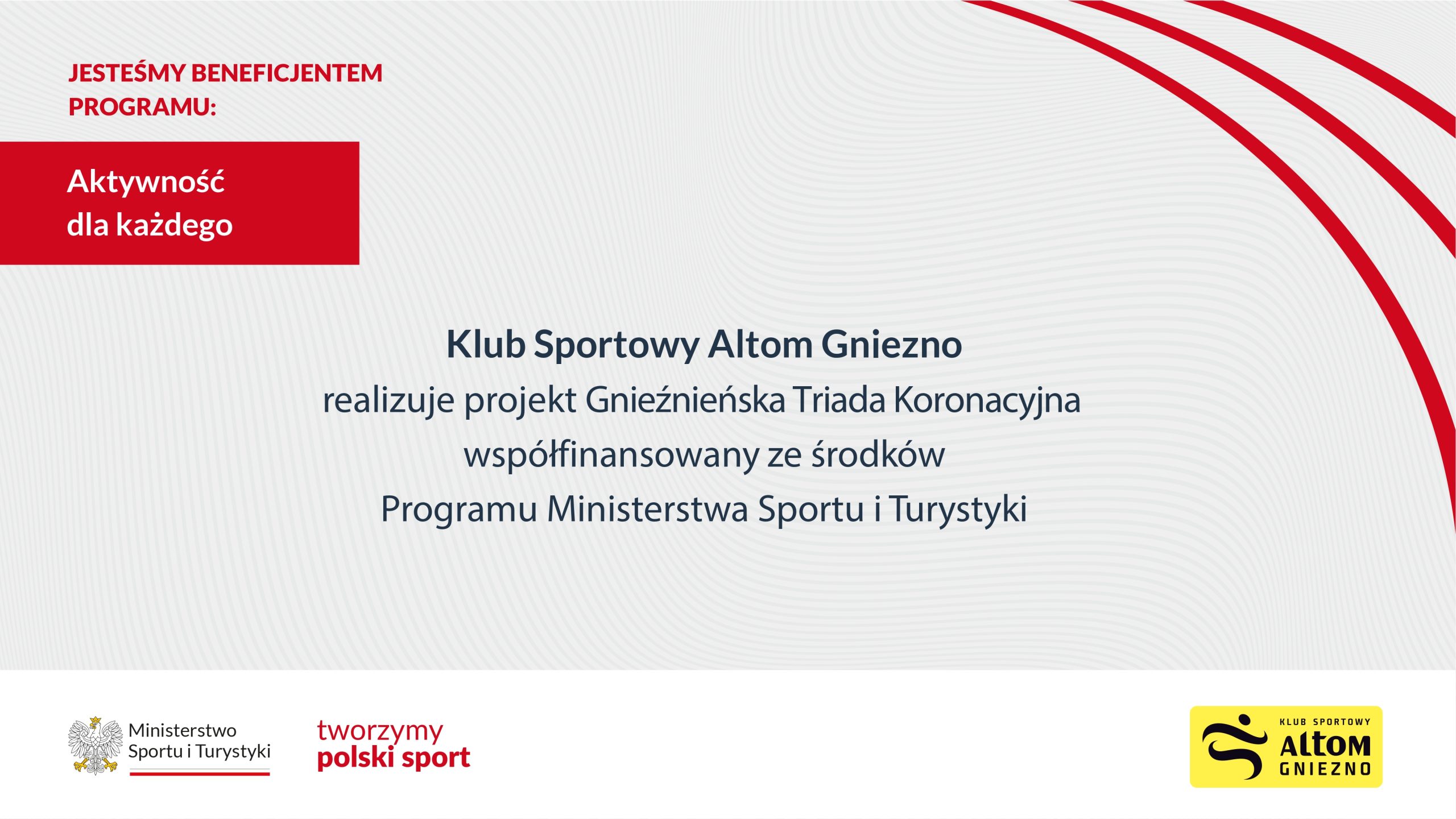 Zgodnie z umową nr 2025.0730/3001/UDot/DS/04/AK z dnia 29.09.2025 roku dotyczącą dofinansowania zadania publicznego ze środków budżetu państwa w ramach programu Aktywność dla każdego, Klub Sportowy Altom Gniezno otrzymał dofinansowanie na realizację zadania publicznego Gnieźnieńska Triada Koronacyjna, w skład którego wchodzą: 22. Bieg Europejski, 48. Bieg Lechitów oraz 11. Gnieźnieński Bieg Niepodległości.